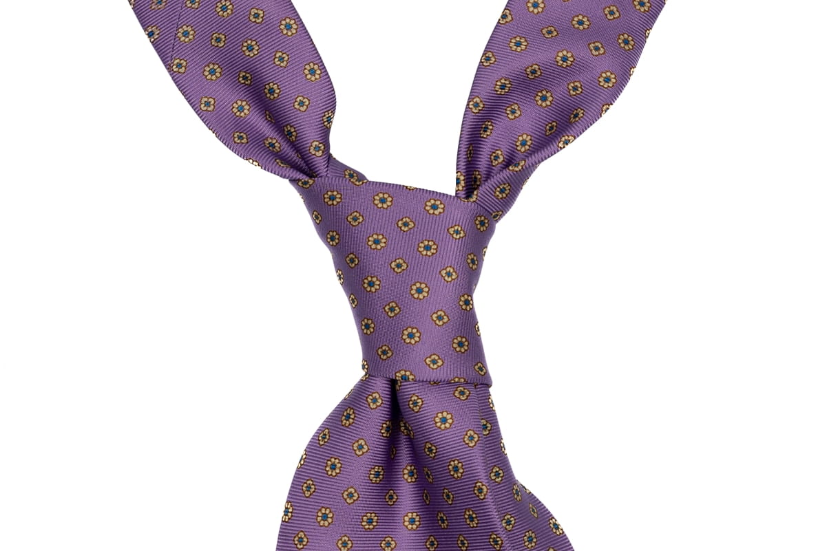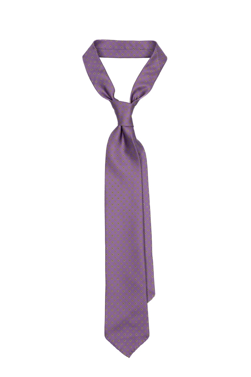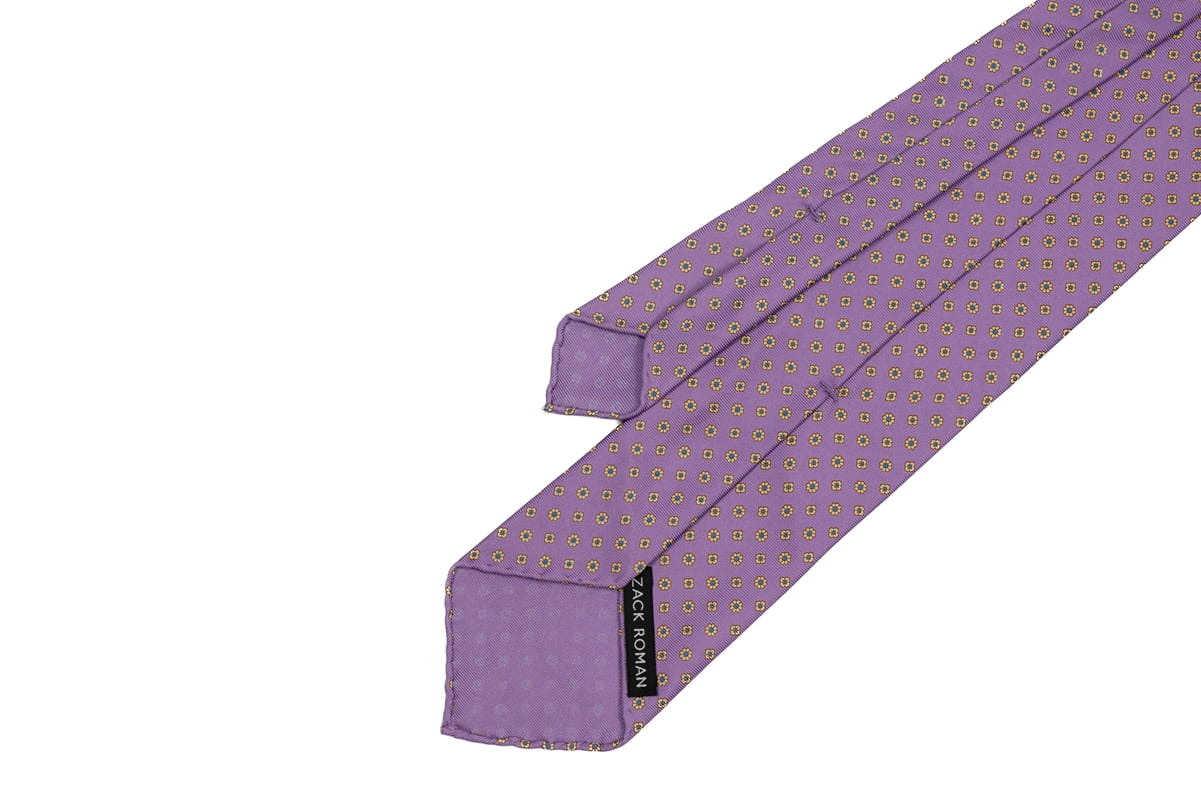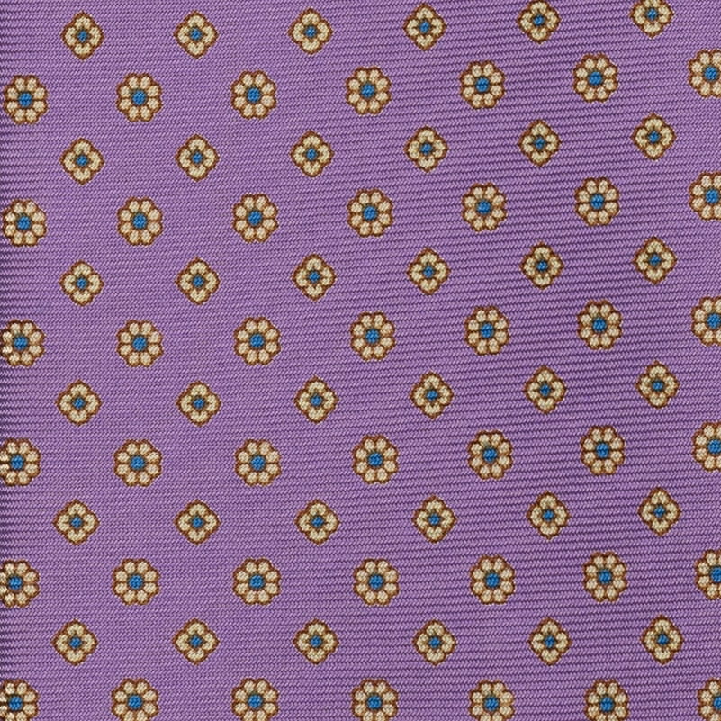 Krawat z jedwabiu, lawendowy z żółto-błękitnymi kwiatami
