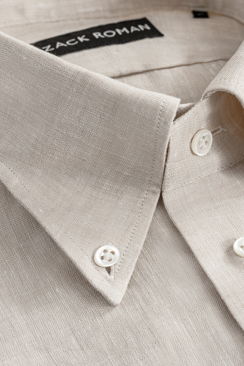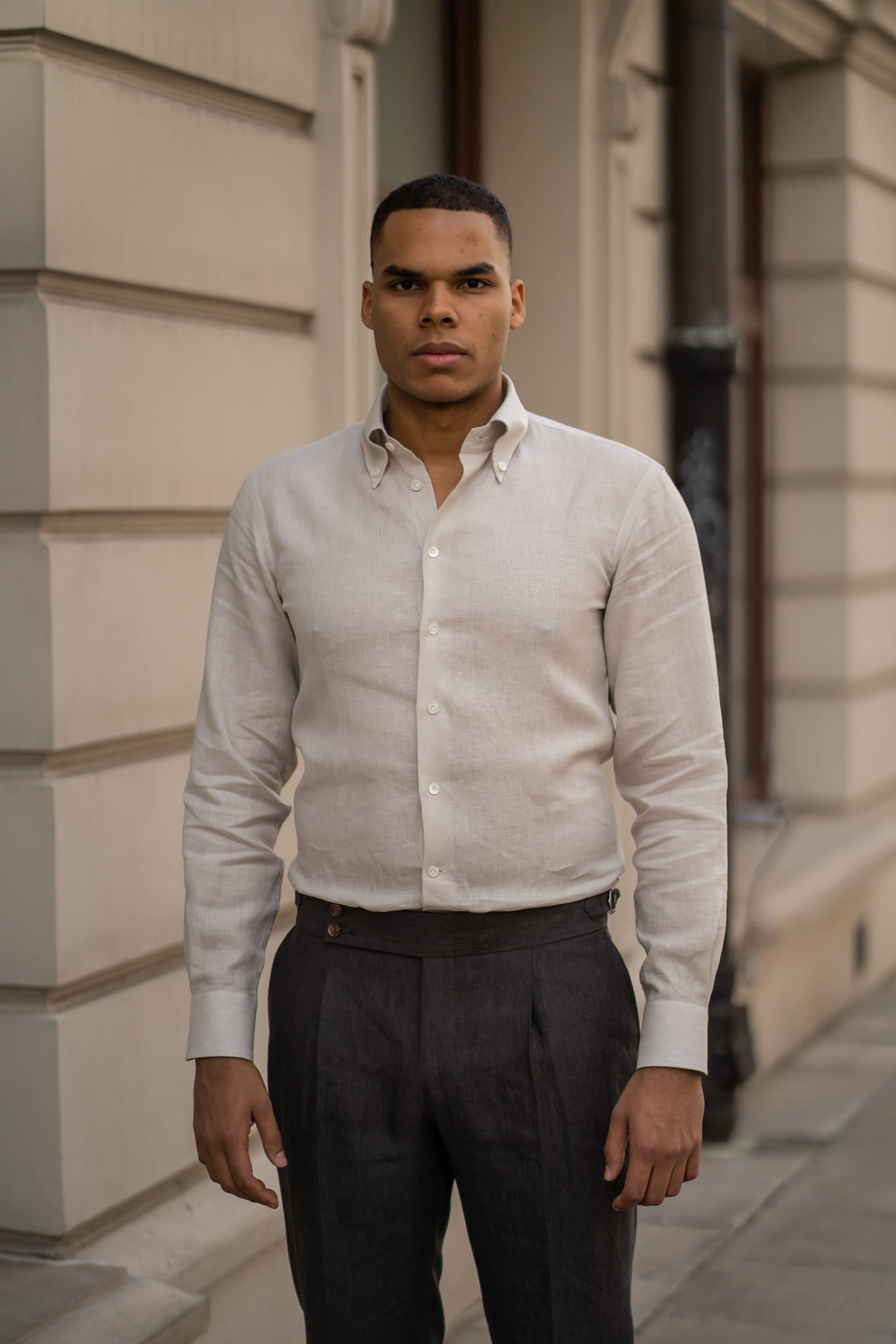 Len to idealny wybór na najcieplejsze dni – lekki, przewiewny i niezwykle komfortowy. Ta beżowa koszula button-down doskonale sprawdzi się zarówno na wakacjach, jak i w miejskich stylizacjach. Możesz nosić ją ze szortami na letni spacer, zestawić z chinosami na kolację czy dobrać do lnianych spodni, tworząc spójny i elegancki zestaw.