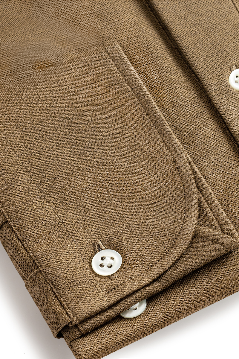 Brązowy popover to połączenie klasyki z subtelną nutą nonszalancji. Wykonany z wyjątkowej mieszanki 70% bawełny i 30% jedwabiu, zachwyca jedwabistą gładkością, miękkością i lekkością. Naturalne włókna sprawiają, że materiał doskonale oddycha i jest przyjemny w noszeniu, a subtelny połysk dodaje mu elegancji.