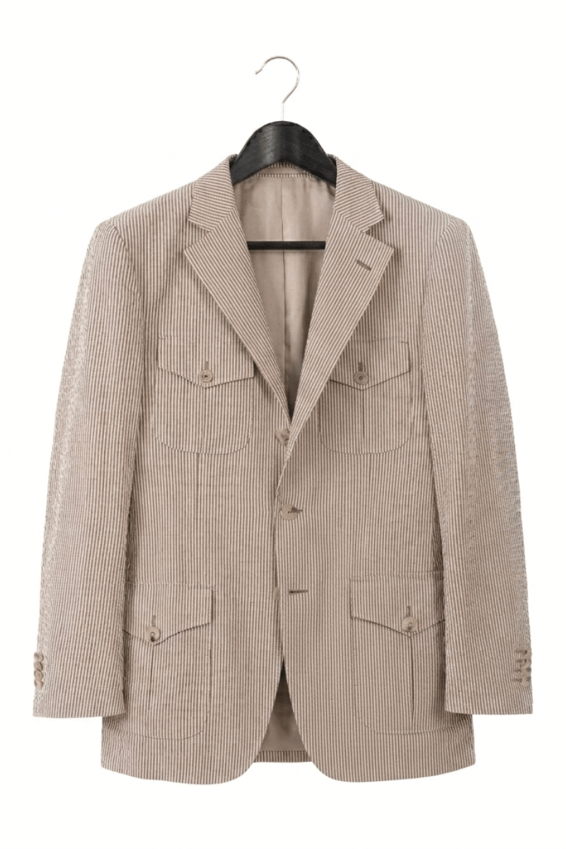 Garnitur Męski Beżowy Safari Seersucker – 100% Bawełna, Half Canvas