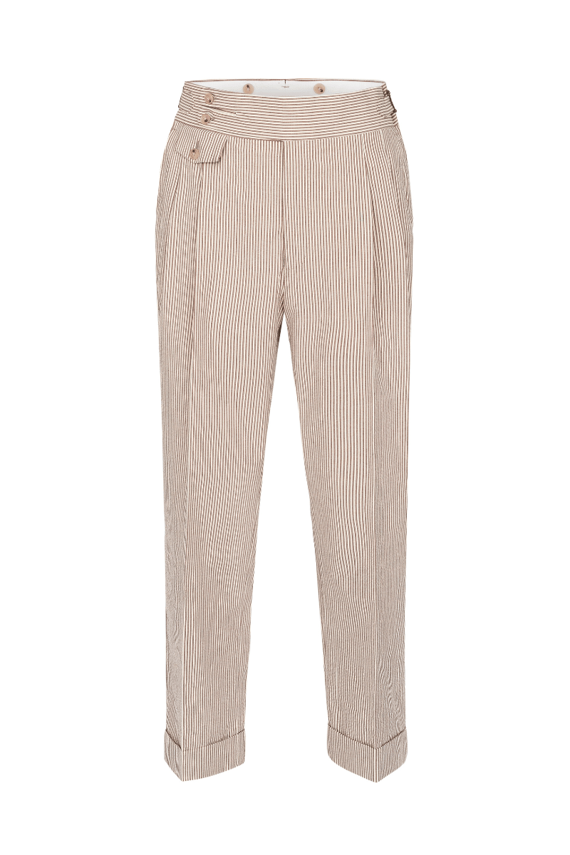 Spodnie garnituru Safari Seersucker to projekt krawiecki łączący klasyczny komfort z funkcjonalnością ekspedycyjną.