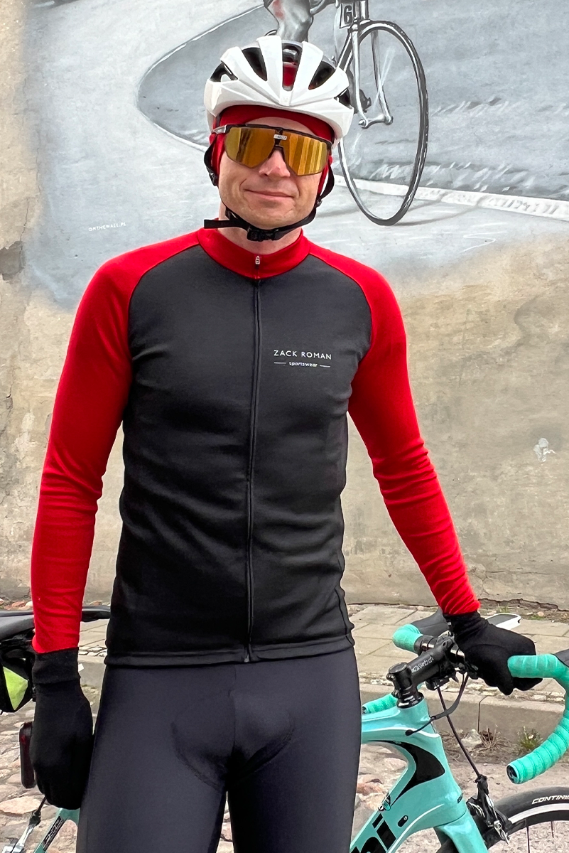 Koszulka kolarska Extra Warm z wełny merino, czarno-czerwona, 283 gr