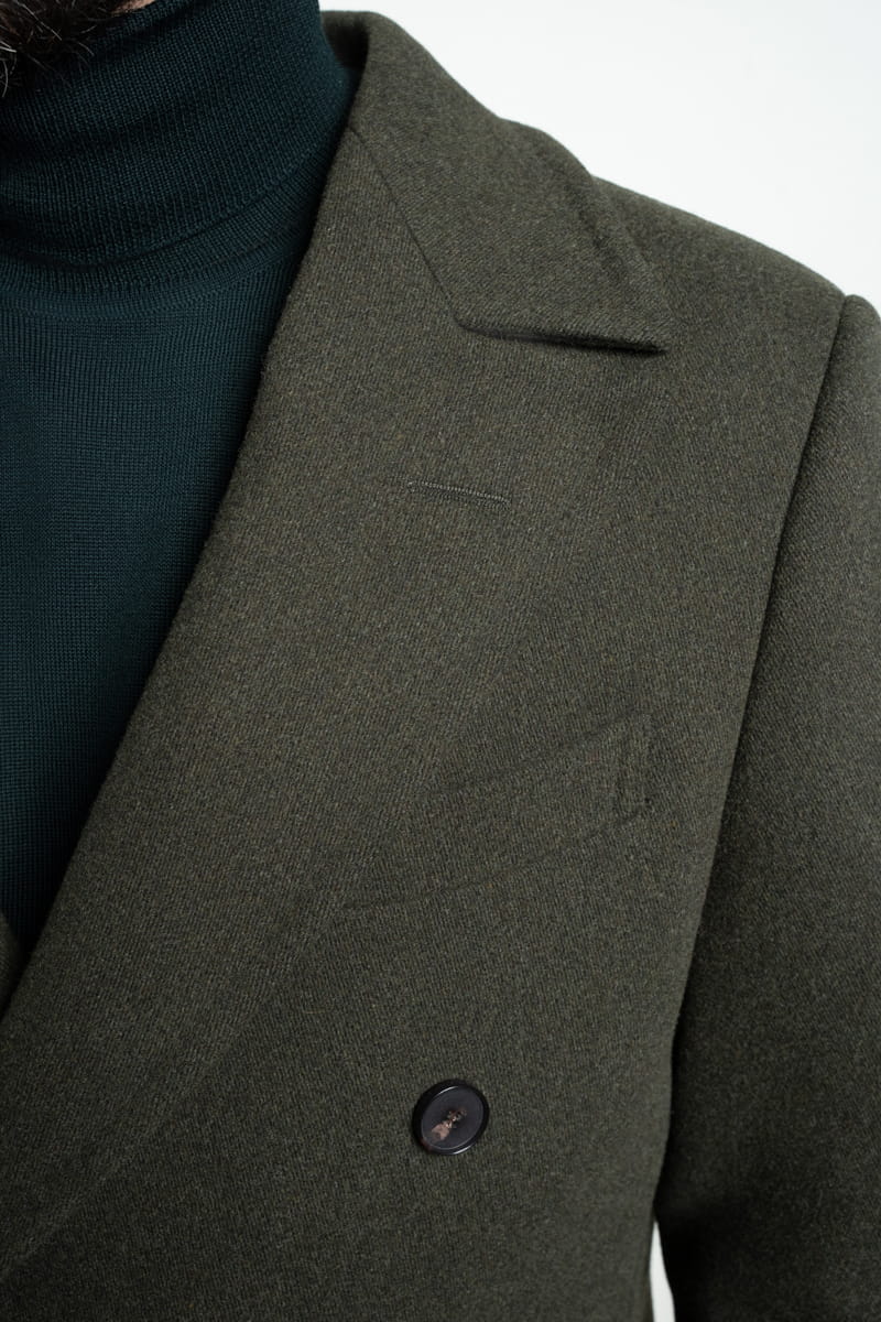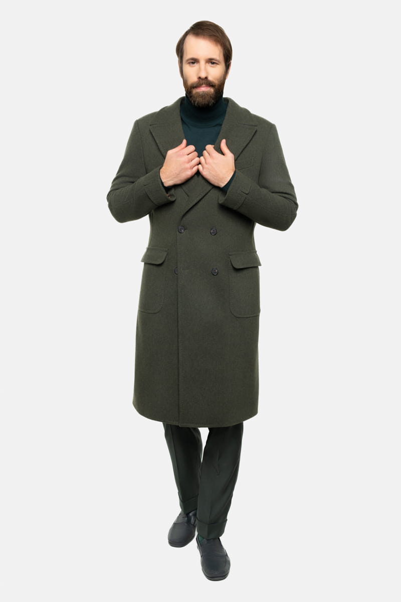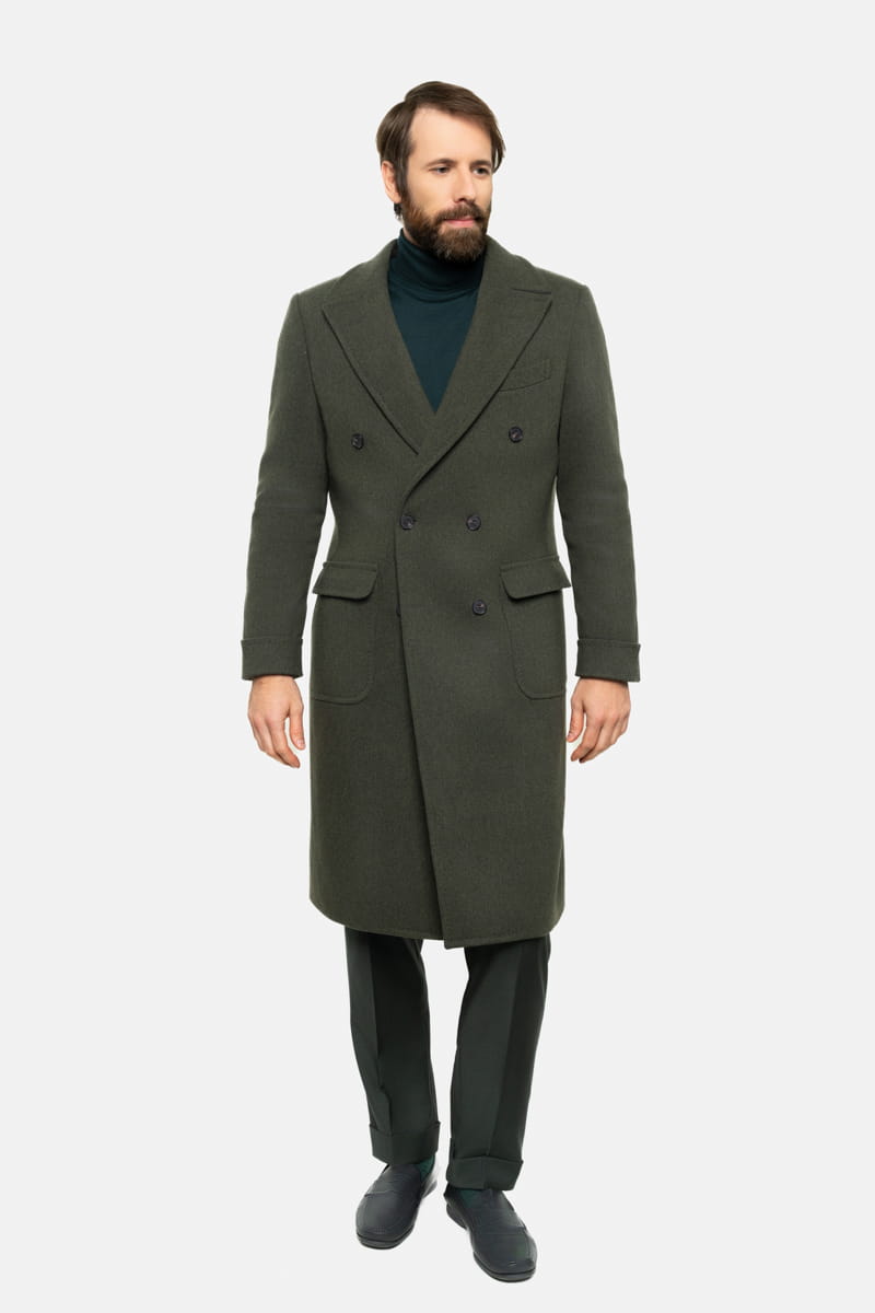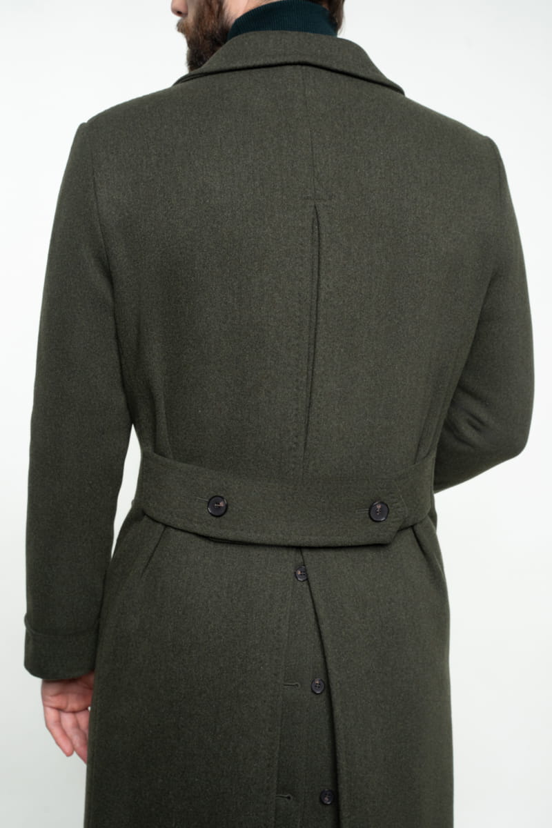 Poszukujesz płaszcza łączącego elegancję i wygodę? Nasz dwurzędowy płaszcz Ulster w zielonym odcieniu British Army Green to kwintesencja klasyki i funkcjonalności. Wykonany z najwyższej jakości włoskiej wełny, o gramaturze 610 g/mb., zapewnia ciepło bez zbędnego obciążenia, dzięki lekkiej konstrukcji. Jego klasyczny, militarny styl jest nie tylko stylowy, ale także praktyczny – doskonały zarówno na długie spacery, jak i chłodne dni w mieście.