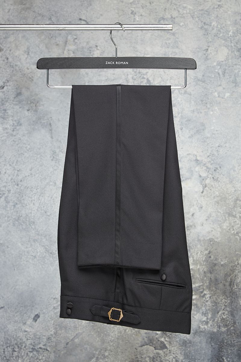 Czarny smoking jednorzędowy wymaga dodatkowo pasa hiszpańskiego. Nie obędzie się też bez czarnej muchy i białej koszuli. Do kieszonki piersiowej polecamy włożyć biała poszetkę.