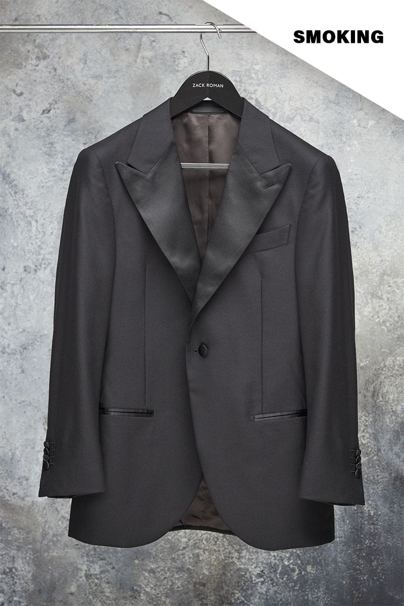 Czarny smoking jednorzędowy z ostrymi wyłogami świetnie sprawdzi się na formalne okazje (w tym na wesele), które popularnie określa się jako black tie. Smoking London z klapami zamkniętymi (typu szpic fason) jest ulokowany najwyżej w smokingowej skali formalności. Wyżej jest już tylko frak.