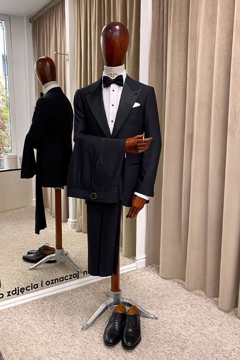 Czarny smoking London. Klasyk z ostrymi wyłogami
