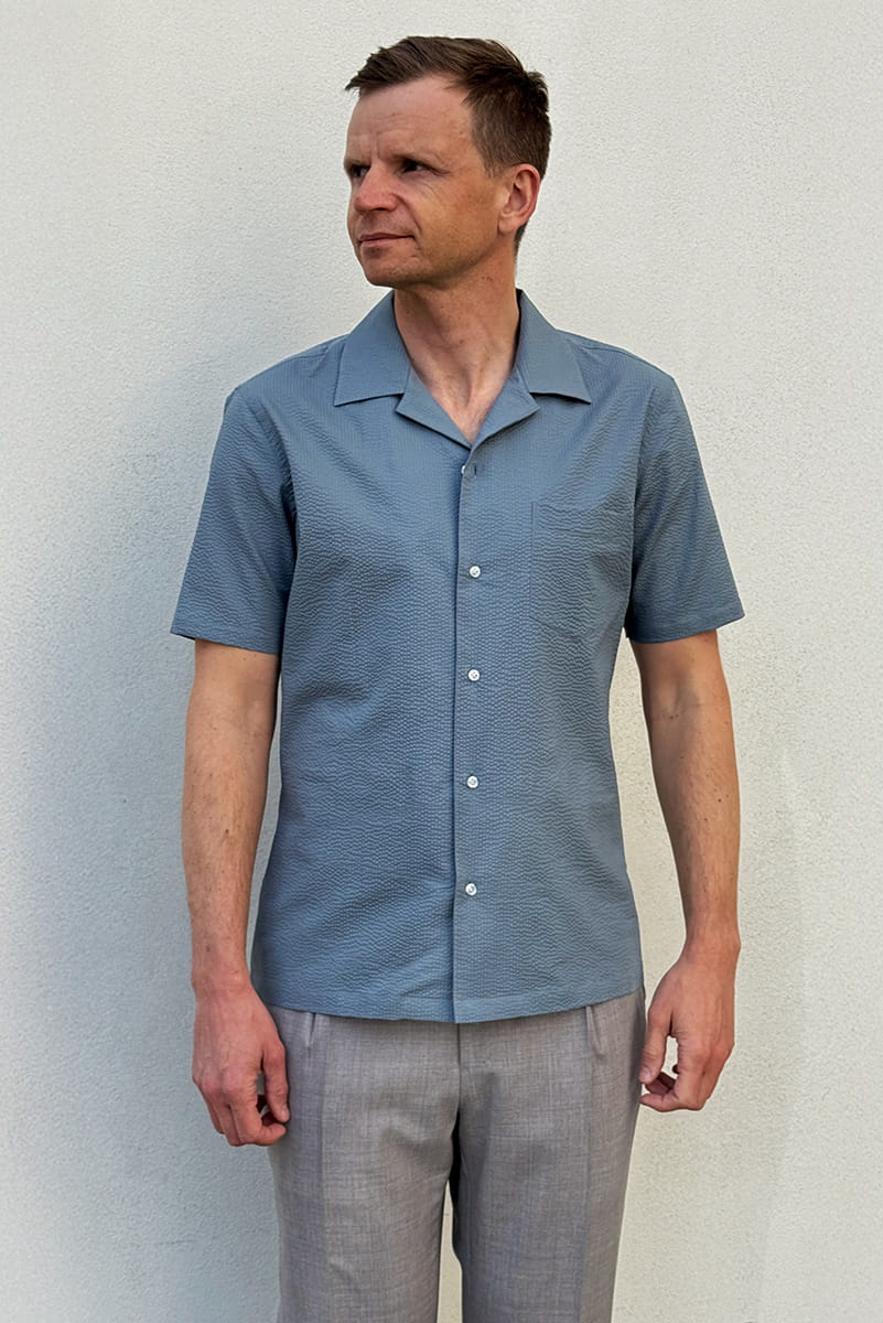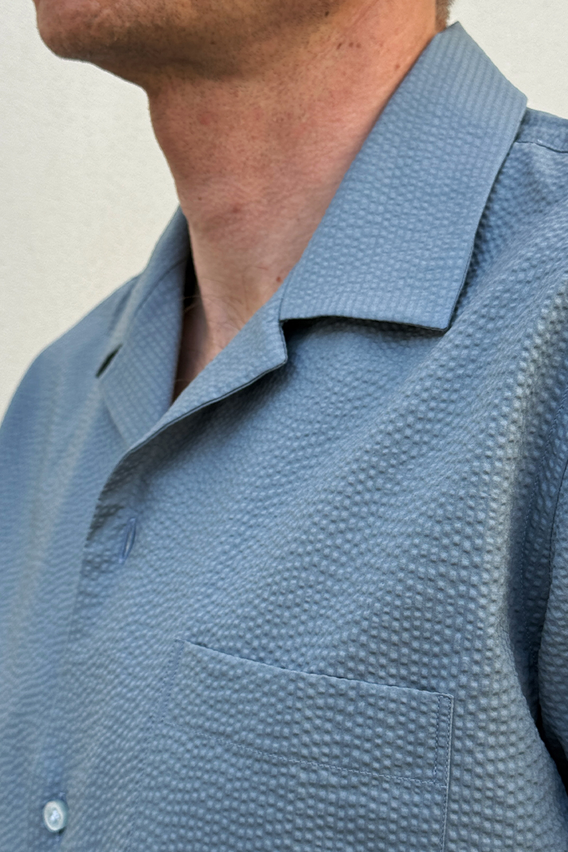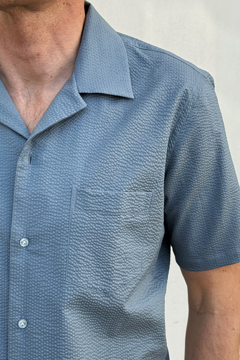 Szaroniebieska koszula seersucker to świetna alternatywa dla gładkich klasyków, praktyczna, stylowa i idealna dla osób, które szukają wygody bez rezygnowania z elegancji.
