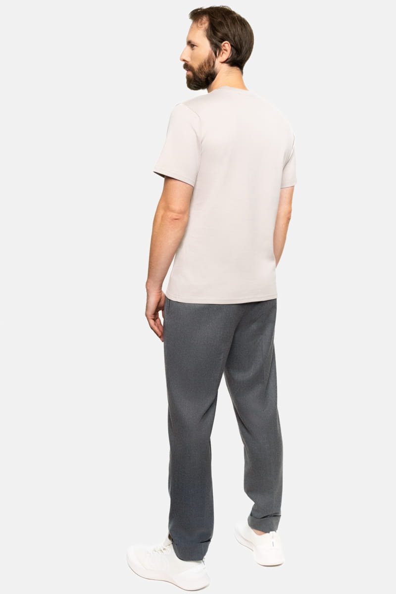 T-shirt Ocean, popielaty, to harmonijne połączenie klasycznego stylu i nowoczesnych technologii. Wykonany z mieszanki bawełny organicznej i włókien z alg morskich, oferuje nie tylko wyjątkowy komfort, ale także dodatkową troskę o skórę. Algi morskie, znane ze swoich właściwości kojących i regenerujących, są bogate w minerały oraz antyoksydanty wspierające zdrowie skóry. Ich naturalne właściwości antybakteryjne pomagają również zachować koszulkę dłużej świeżą.