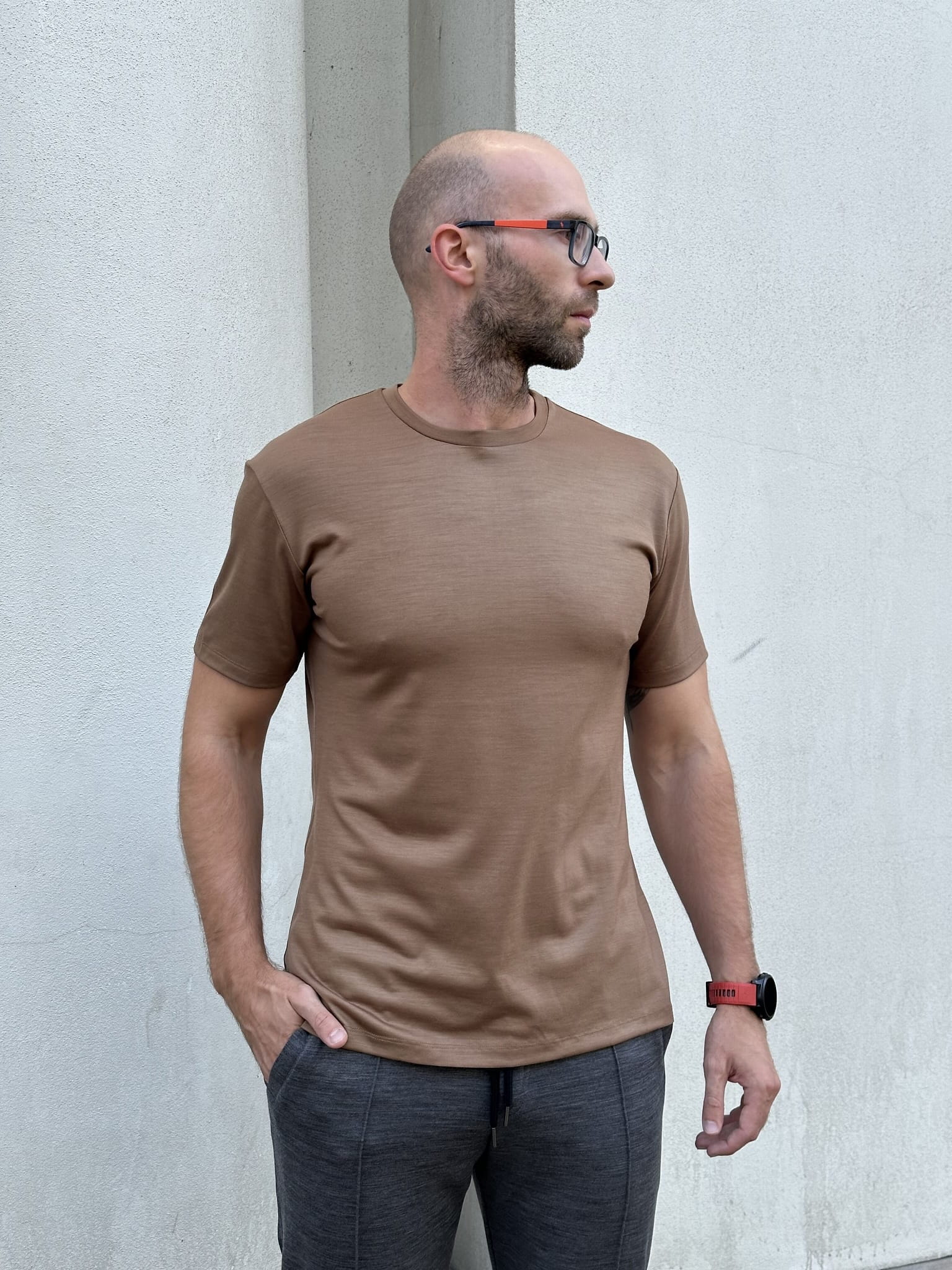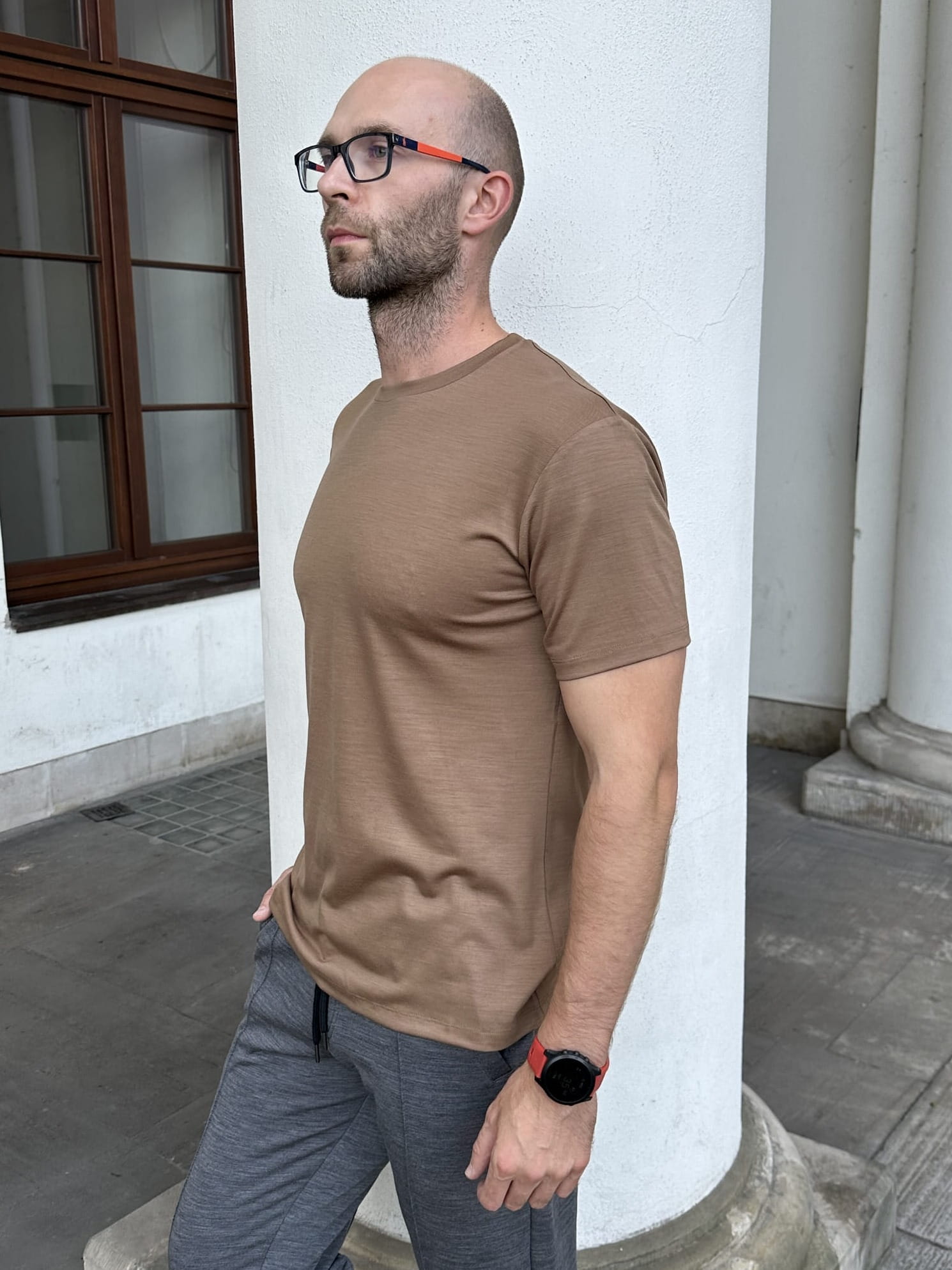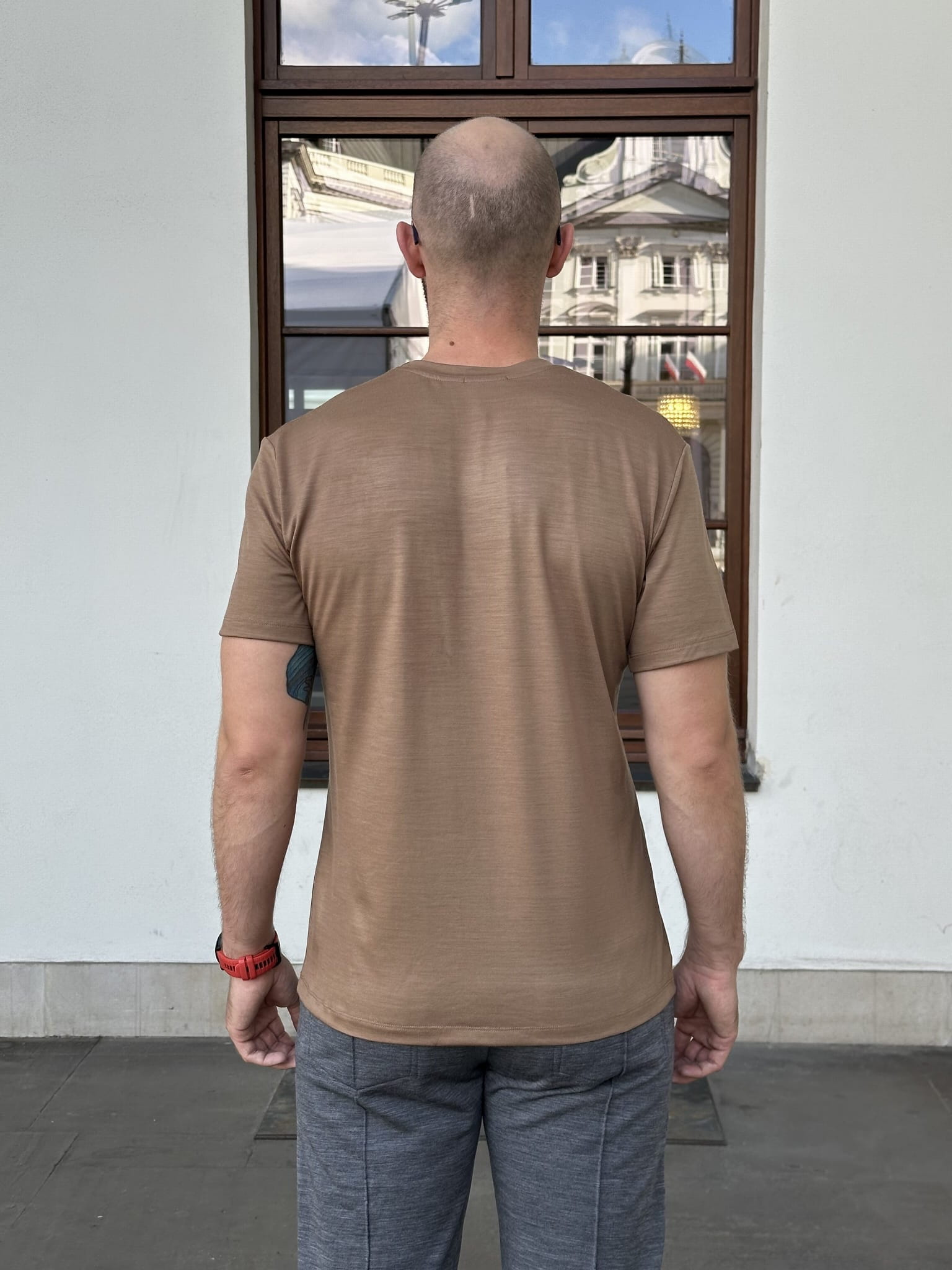 T-shirt sportowy z wełny merino 195, beżowy