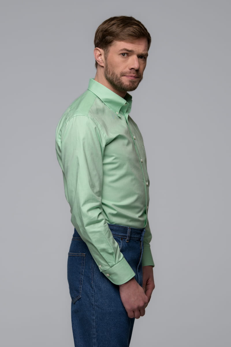 Poszukujesz czegoś idealnego do mniej formalnych wiosennych i letnich stylizacji? Nasza zielona koszula button down będzie świetnym wyborem! Zachwyci Cię nie tylko kolorem, ale także wysoką jakością organicznej bawełny oksfordzkiej, z której została uszyta. Kołnierzyk z perfekcyjnym rollem przybierającym linię litery S, kieszonka na piersi i niebanalny odcień zieleni podkreślają nieformalny charakter koszuli, dodając jej jednocześnie niepowtarzalnego charakteru.