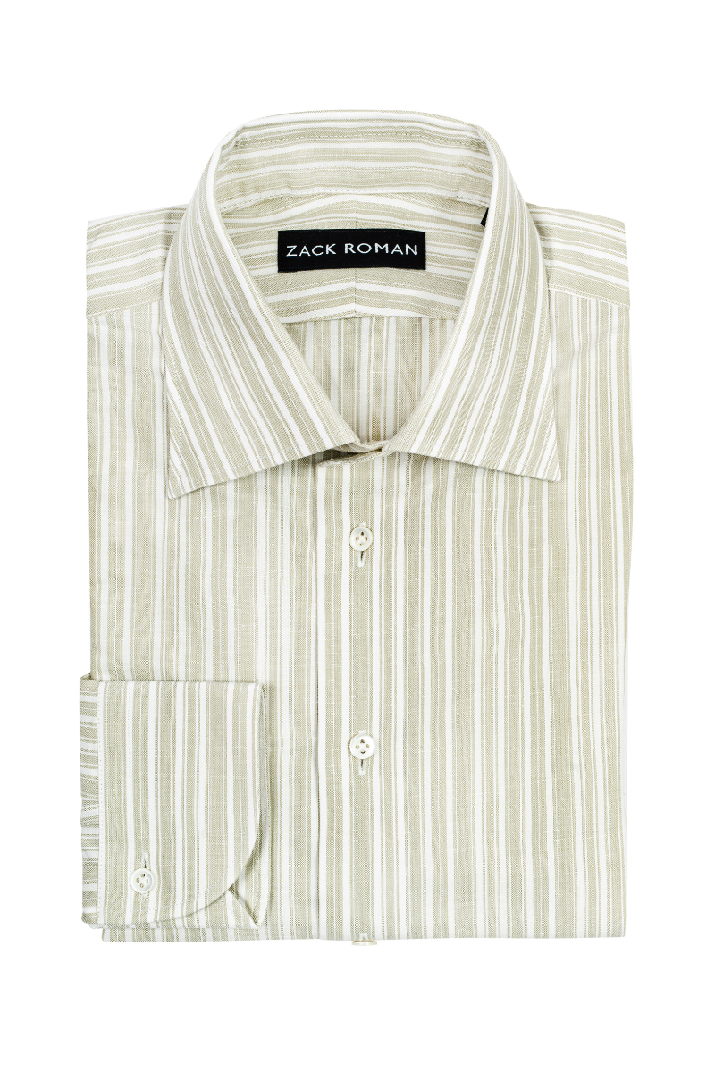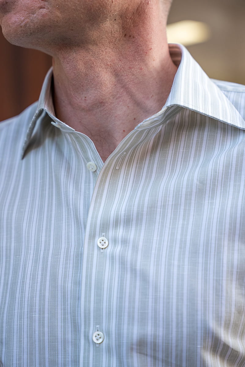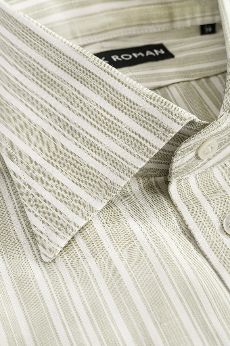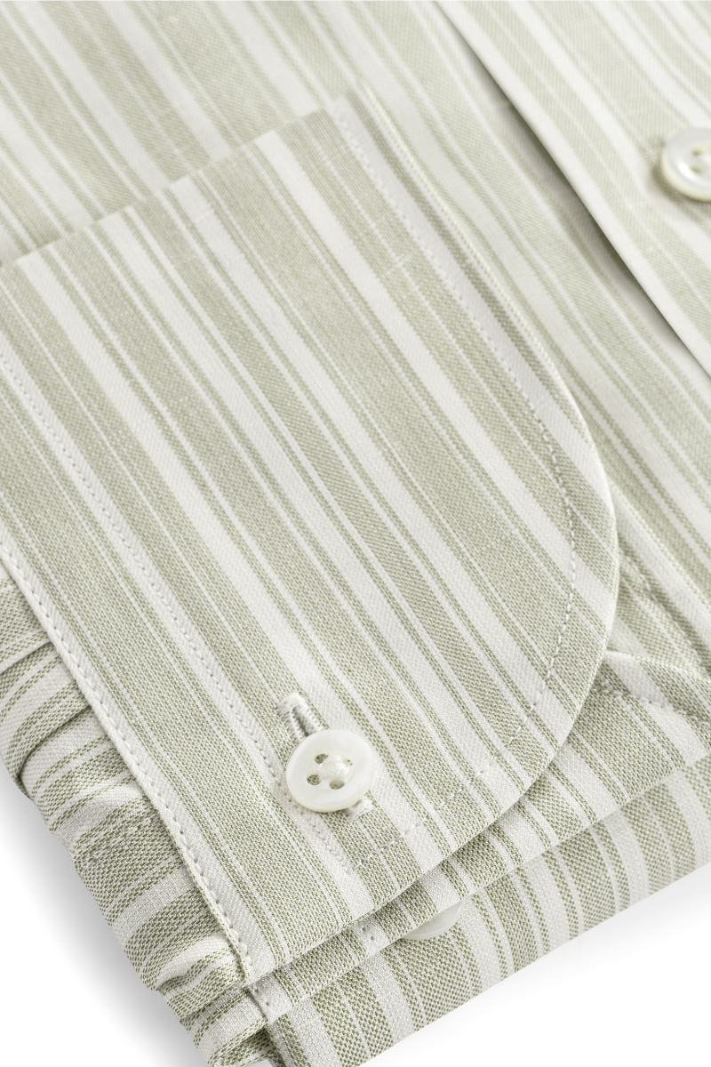 Zielona koszula w paski Silk Touch – bawełniano-lniana z jedwabiem